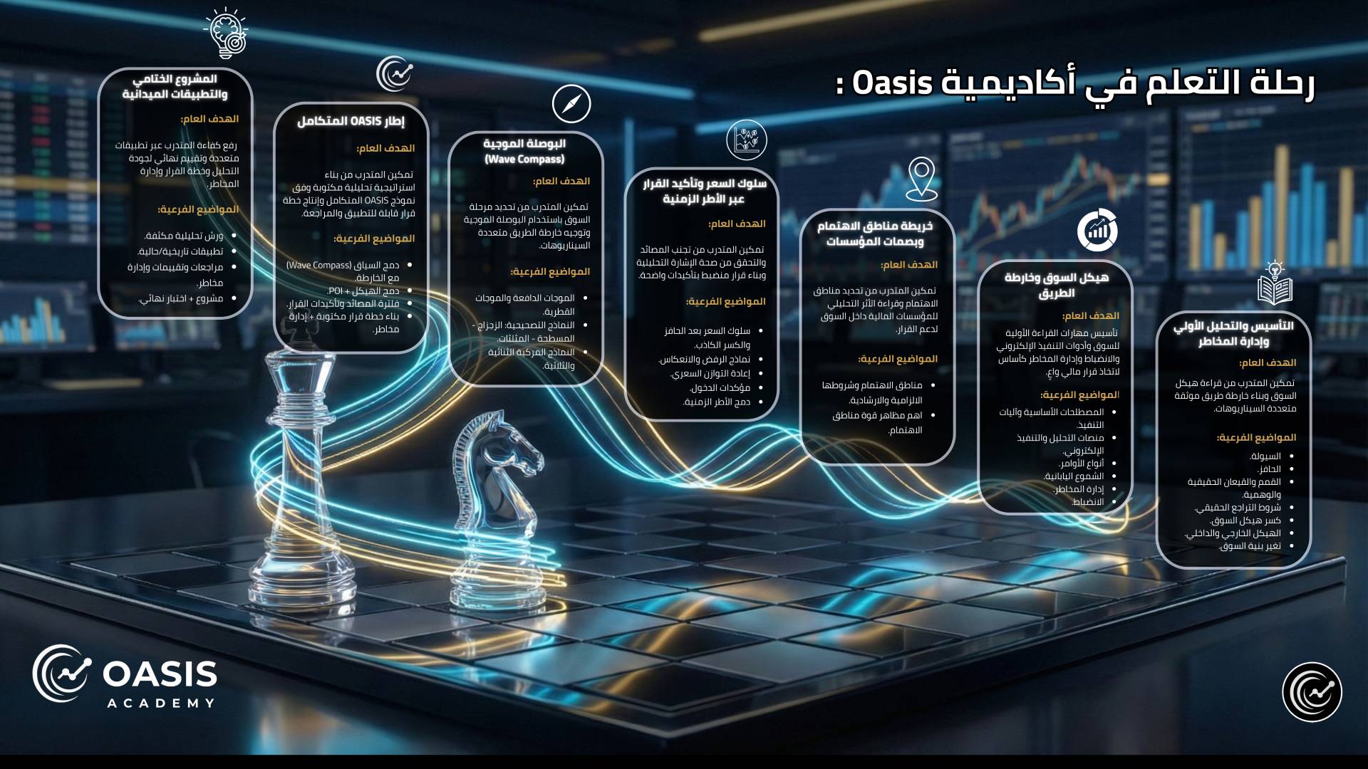 Oasis Academy ليست برنامجًا قصيرًا أو محتوىً ترويجيًا، بل إطار تعليمي متكامل يهدف إلى نقل المتعلم من ردّة الفعل إلى القدرة على اتخاذ قرارات مؤسسية مبنية على منطق السوق.